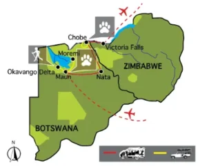 - Okavango Delta – mokoro excursion and bush walks